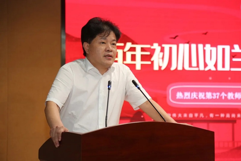 接著華國平董事長上臺,先深深鞠了一躬,表達對一線教師的敬重和感謝。感謝所有在教育的天地里默默守望的老師們。在講話中尤其是對奮戰(zhàn)在班主任崗位上的老師們由衷的敬意,表達了對老師們最誠摯的祝福。接著他鼓勵大家做一名有家國情懷的人民教師。企業(yè)需要不斷優(yōu)化產業(yè),增強競爭力,教育更需要每一位教育工作者勤于思考,提高課堂效率,因材施教,提升學校辦學品質。華國平先生的發(fā)言誠摯而充滿了力量,贏得了領導、老師們熱烈的掌聲。